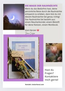 Vom 25.12. bis 5.1. begleite ich dich mit Ritualen, Reflexionsfragen & Visionselementen durch diese magische Schwellenzeit. Dazu Bonus: Abschluss-Ritual am 06.01.26